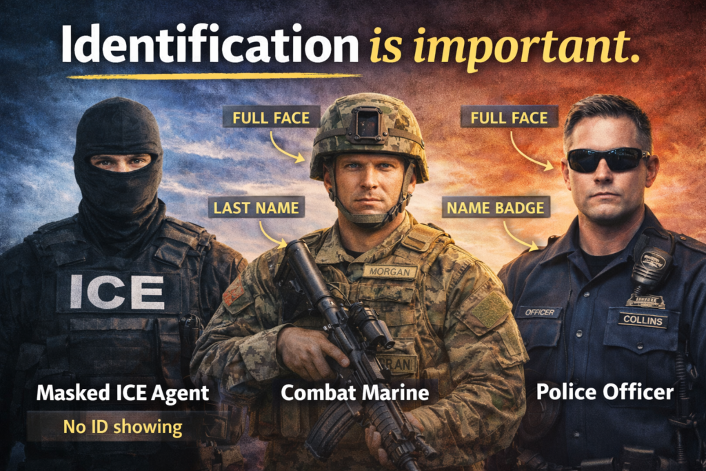 Meanwhile Congress is debating if Trumps federal agents should be identifiable just like our armed forces and police officers.