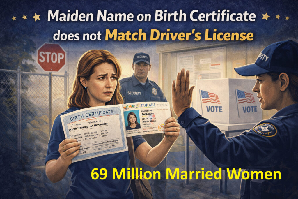 According to census and social research data, approximately 84 percent of women who marry change their surnames. This creates a fundamental documentary mismatch for an estimated 69 million American women: their birth certificate, which lists their maiden name, no longer matches their current legal name.