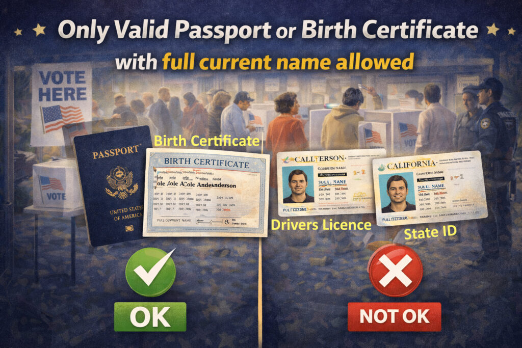 The Republican House has passed what they call –The SAVE America Act – which requires all voters to show proof of citizenship at both registration and at the polls. This requires either a valid passport or a birth certificate with the person’s full current name on it. Many married women use thier husbands surname on thier ID.