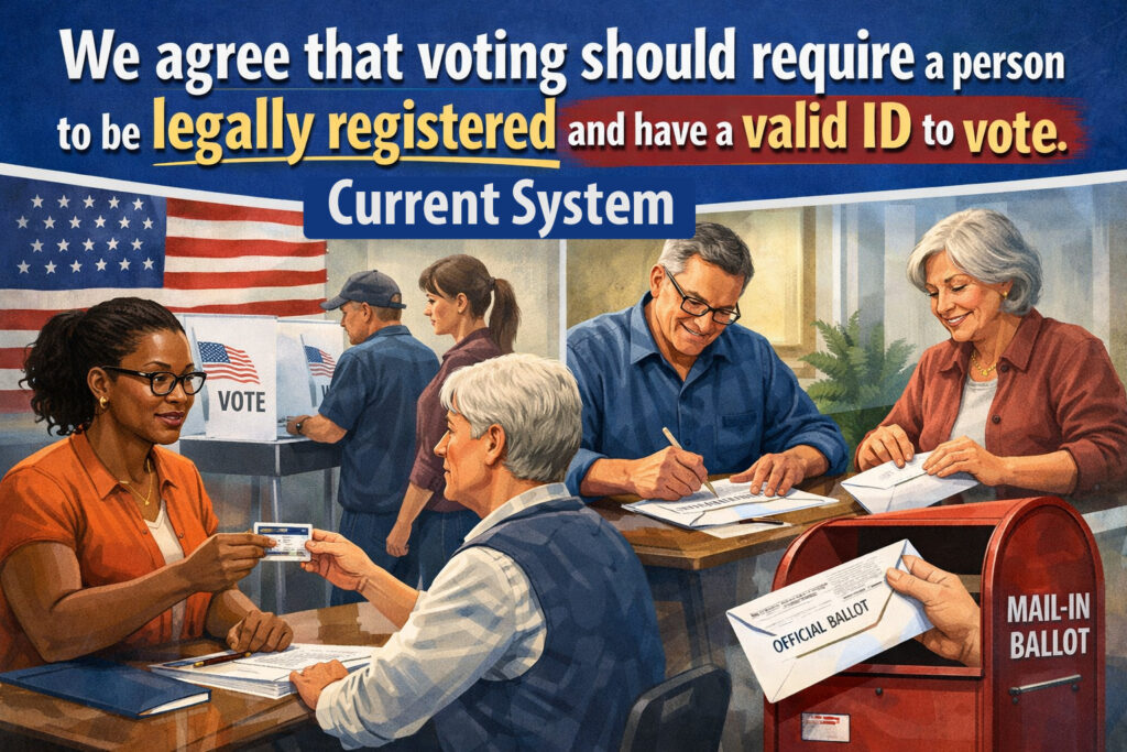The thing is, all states already require voters to prove both identification and their eligibility to vote confirmed before all votes are tabulated.